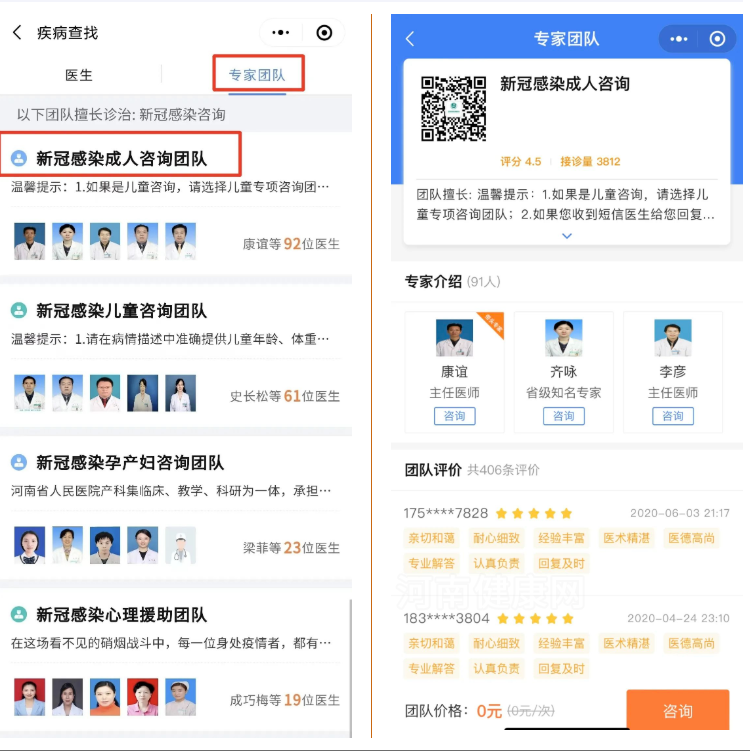 4.点击“专家团队”,选择相应专家团队发起咨询即可