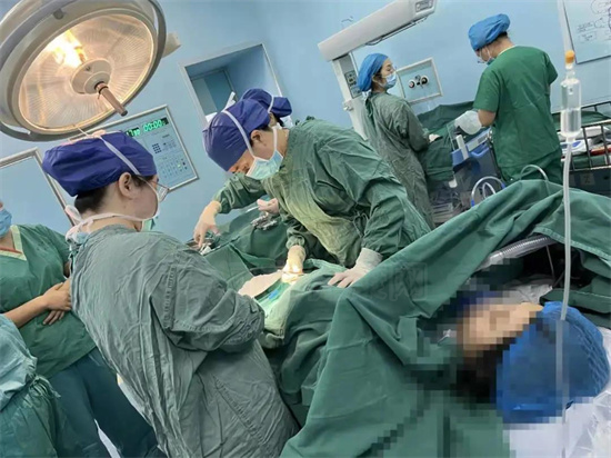 很快,手术如期进行。手术开始后,倩倩因患有严重的低蛋白血症,腹腔里有大量的腹水,并且倩倩以前开展过阑尾切除手术,她腹腔内大网膜广泛粘连于前腹膜及子宫前壁,已经遮盖住胎儿娩出的通道,且腹水约2500ml。手术难度很大。此时,医院新生儿医师、麻醉科医师、助产士早已严阵以待。当胎儿取出后,大家迅速给孩子清理呼吸道、正压通气、气管插管,第一时间将孩子转至新生儿科进一步治疗。