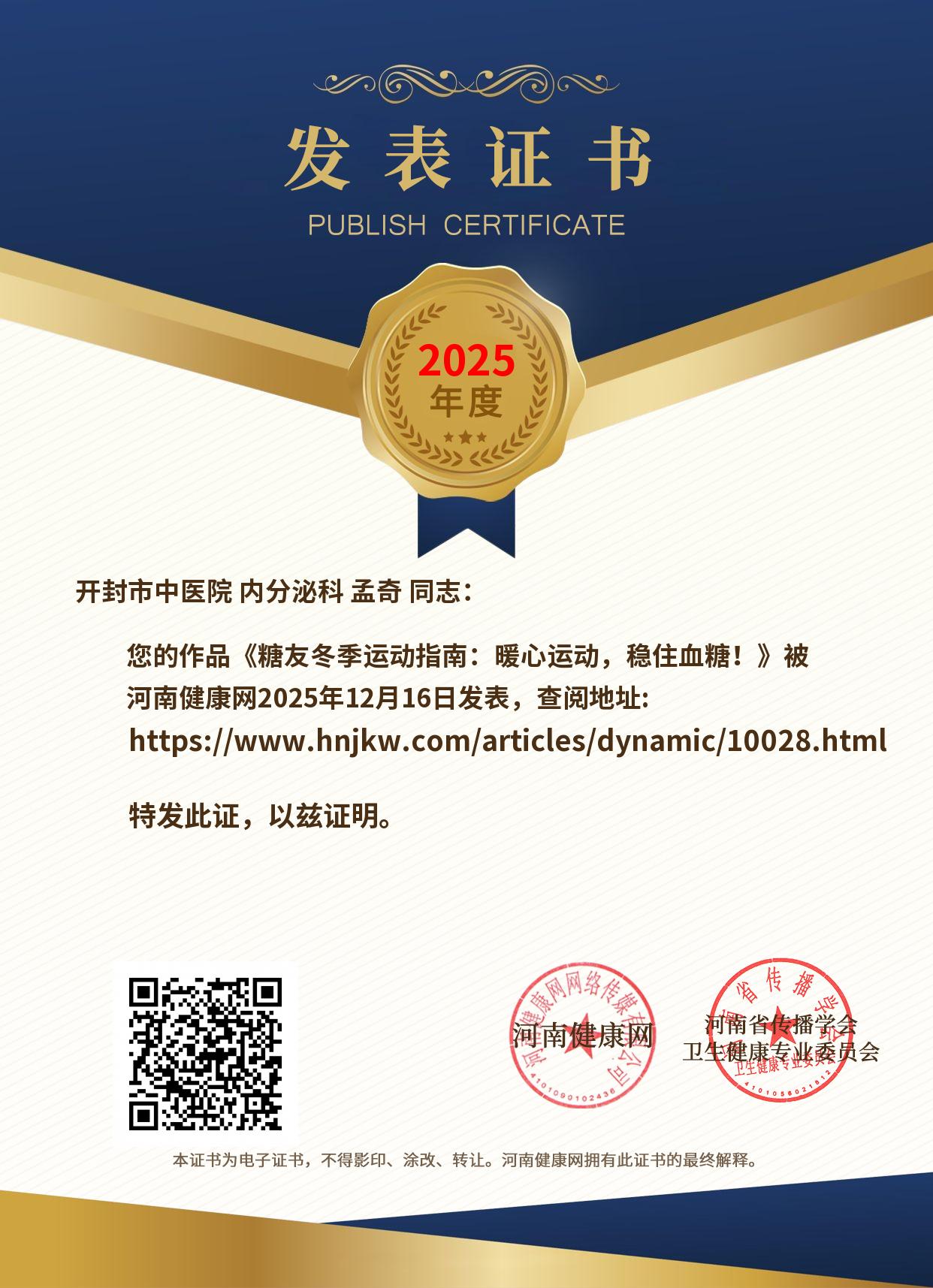 发表证书