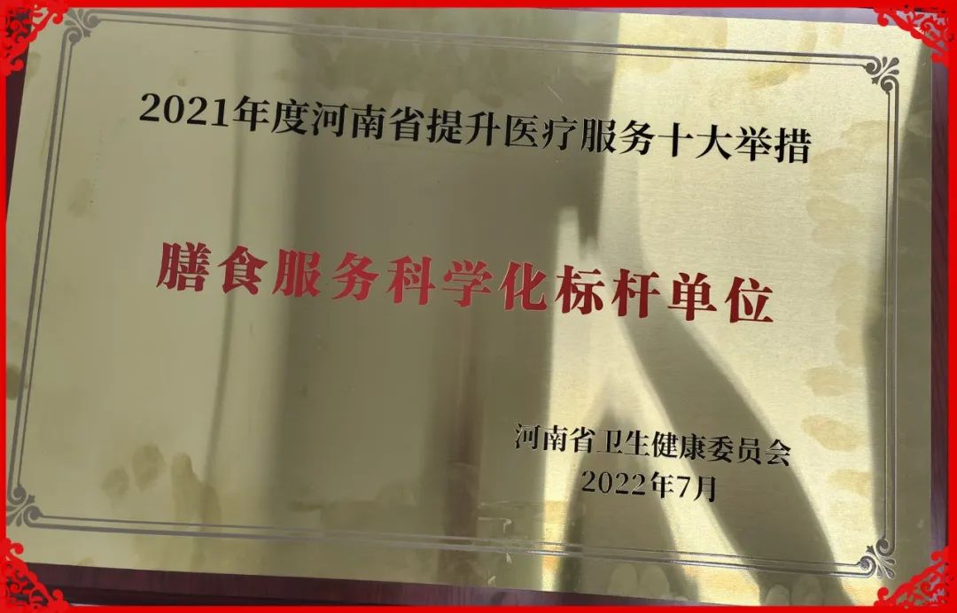 郑州市第九人民医院荣获河南省提升医疗服务十大举措膳食服务科学化举措标杆单位大奖;党委书记白建林、院长李敏荣获优质服务领跑者荣誉;老年医学中心荣获暖心服务岗表彰。