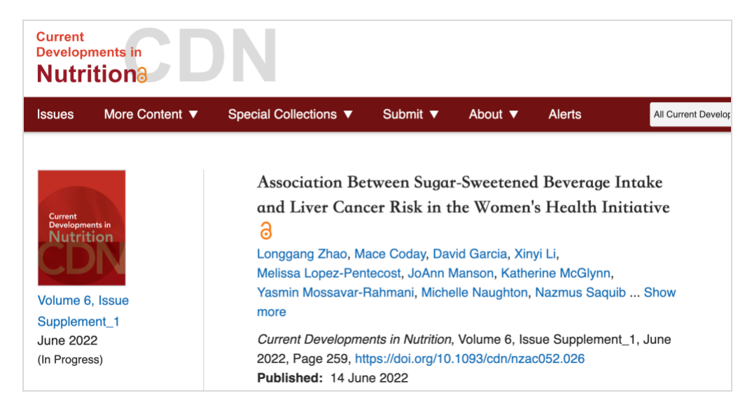 上个月,来自南卡罗来纳大学、哈佛大学等研究机构的科学家在《营养学最新发展》(Current Developments in Nutrition)发表的一项研究发现:每天喝一份以上含糖饮料的女性,相较于每月喝不超过3份含糖饮料的女性,肝癌风险上升78%!