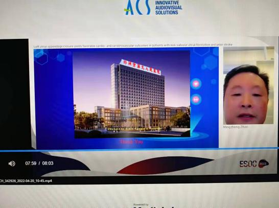 2022年5月4-6日第八届欧洲卒中组织大会[8th European Stroke Organisation Conference (ESOC)]于法国里昂举行。郑州市第九人民医院心脏中心主任、中德房颤中心主任、心内科及大内科首席专家赵明中博士受大会组委会邀请参会,并向与会的国际同行、学者报告新近的临床研究成果“Left Atrial Appendage Closure Yields Favorable Cardio- and Cerebrovascular Outcomes in Patients With Non-valvular Atrial Fibrillation and Prior Stroke”(左心耳封堵术改善非瓣膜性房颤合并卒中患者的心脑血管预后)。