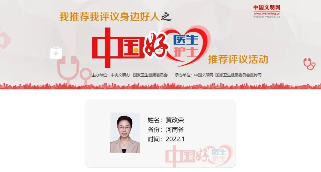 重磅!河南省人民医院黄改荣当选“中国好医生”月度人物!